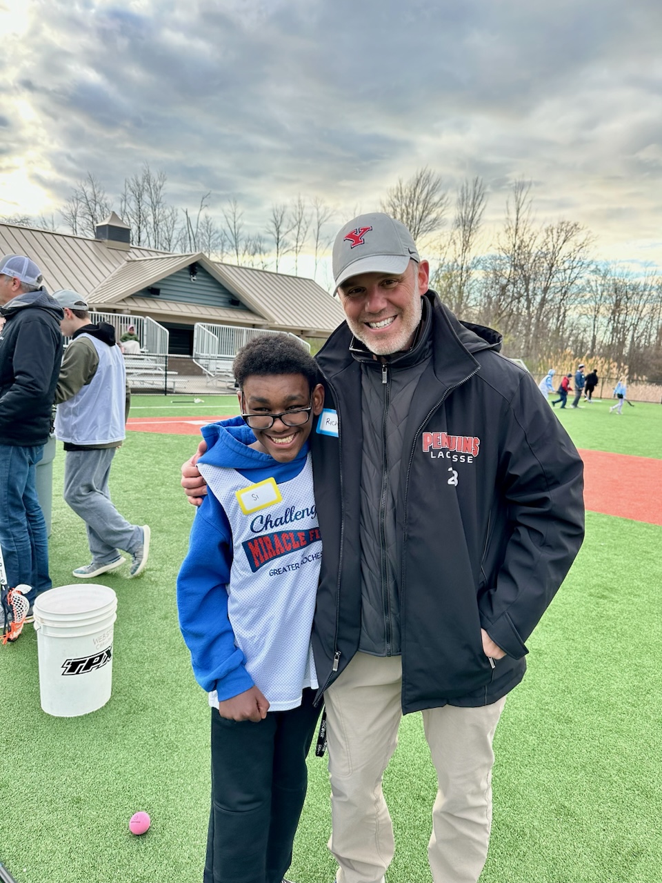 Si with Coach Rund at the Challenger Lacrosse Clinic, a program KMMC had the pleasuire of initiating with the help of your donations.